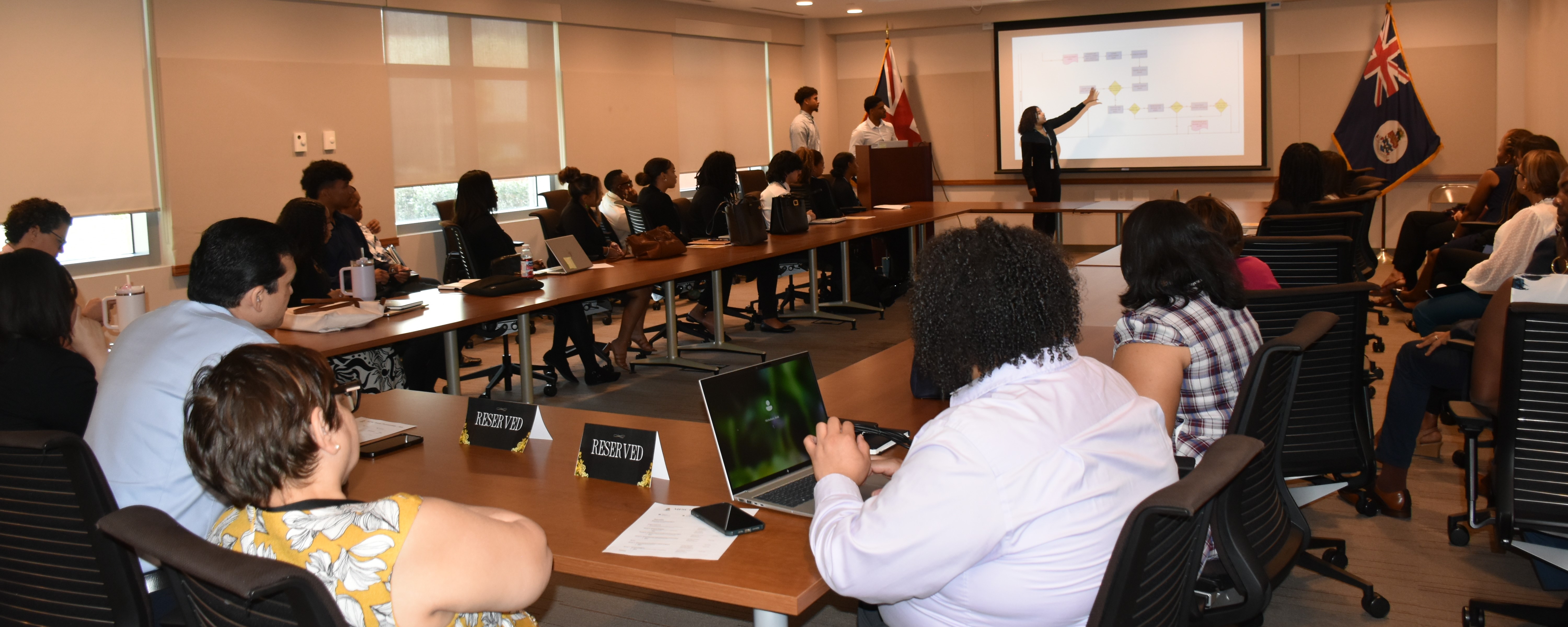Grouped into five multidisciplinary teams, the aspiring professionals were tasked with an ambitious project: to review, document, and map the key services provided by four of the Ministry’s core agencies, namely: the General Registry, Department of Commerce and Investment, Department for International Tax Cooperation, and the Cayman Islands Intellectual Property Office.