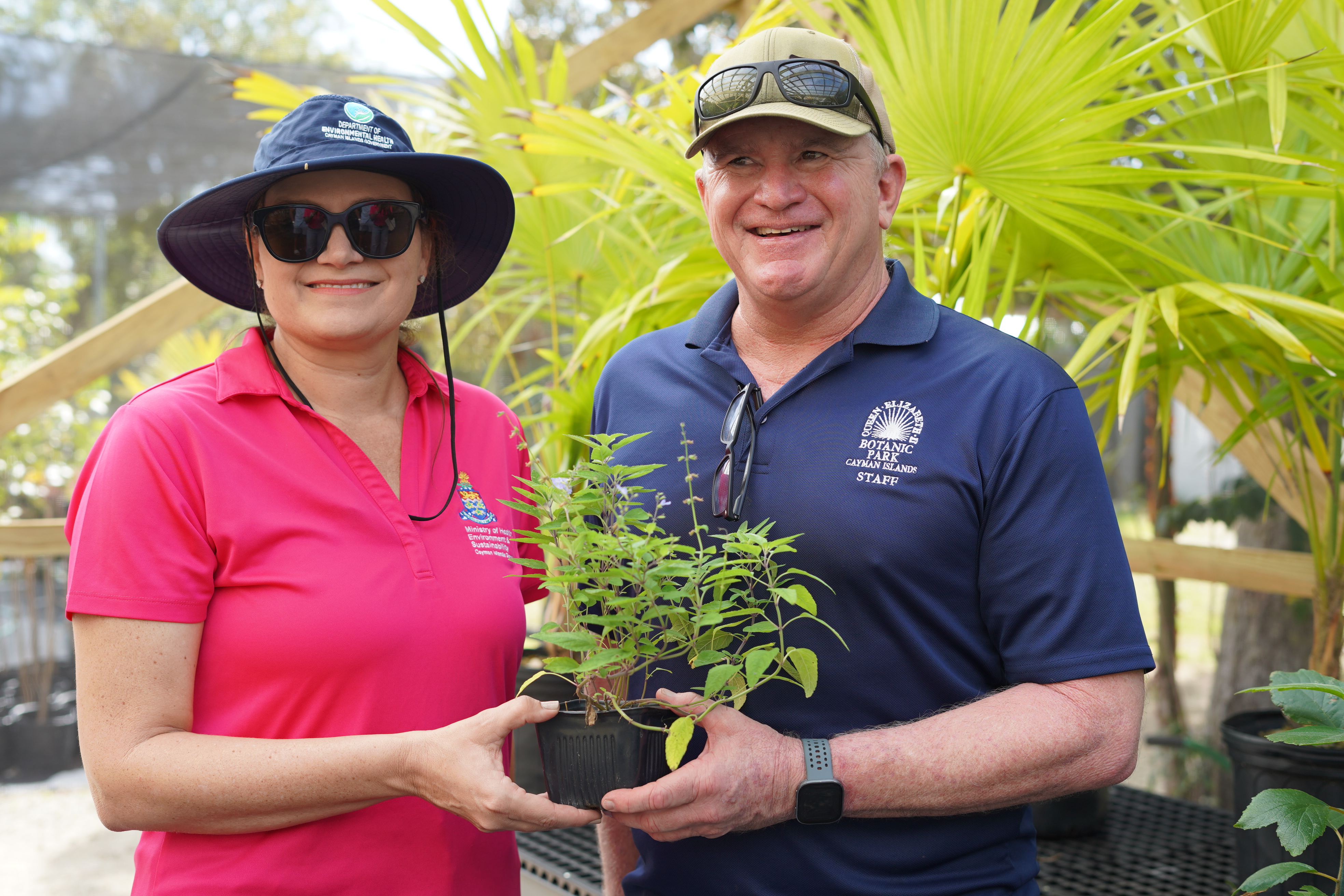 Hon Katherine Ebanks-Wilks, Minister for Health, Environment and Sustainability and John Lawrus, General Manager, Queen Elizabeth II Botanic Park, in the new native plants nursery