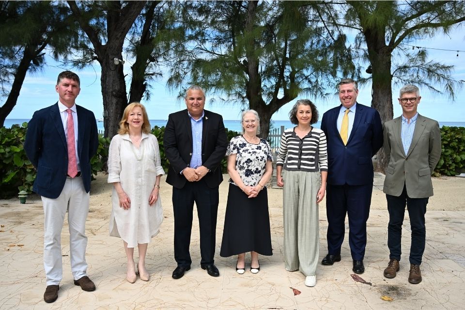 Governor Jane Owen and Premier Hon. André Ebanks along with visiting UK Parliamentarians Dr. Al Pinkerton MP, Lord Brady of Altrincham, Sarah Champion MP, Baroness Ling of Elderslie and Edward Morello MP.