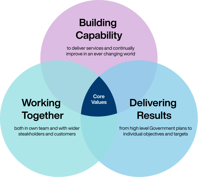 Our Core Competency Framework identifies the essential skills and behaviours that are applicable to all civil servants, irrespective of their role or seniority in the organisation. The framework identifies three core competencies: