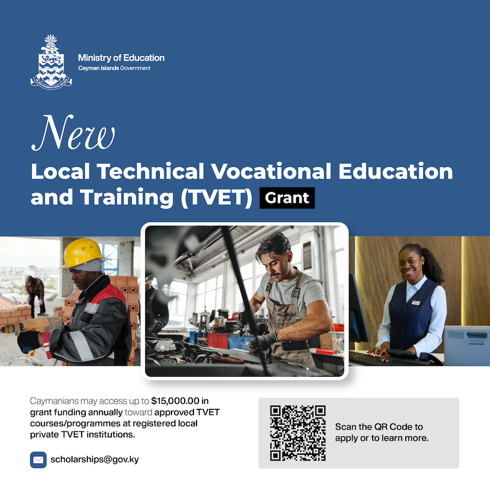 A list of registered TVET institutions is available on the Ministry of Education website at www.gov.ky/education