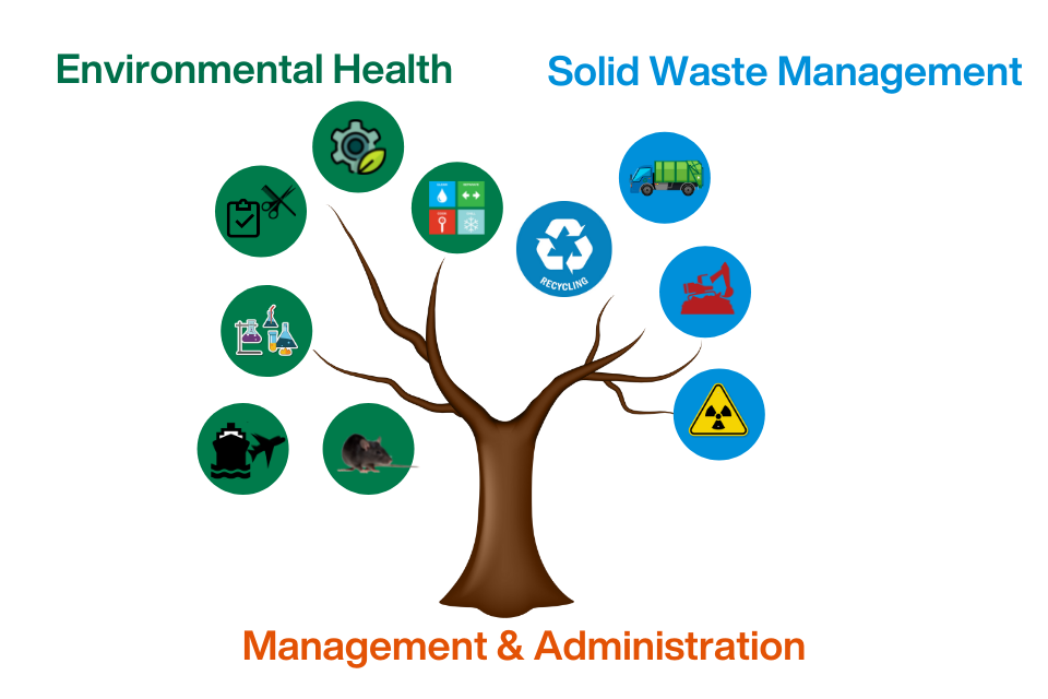 The Department of Environmental Health (DEH) protects the public from environmental health related hazards through measures and activities including management of food hygiene and safety, laboratory services, district sanitation and rodent control, engineering and developmental control, solid and hazardous wastes including waste collection, recycling and disposal; and public education and promotion programmes.