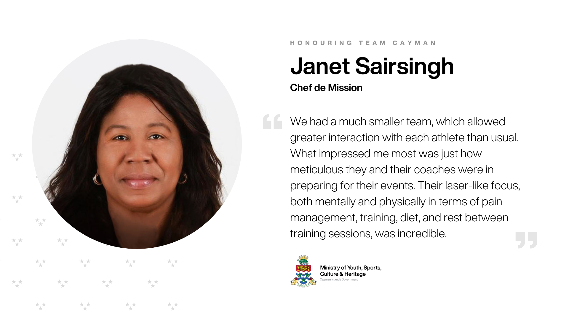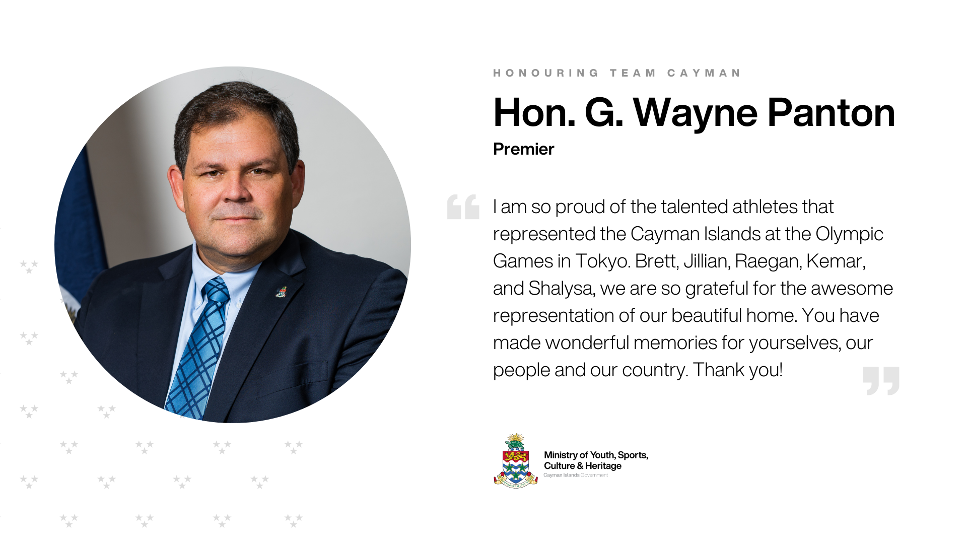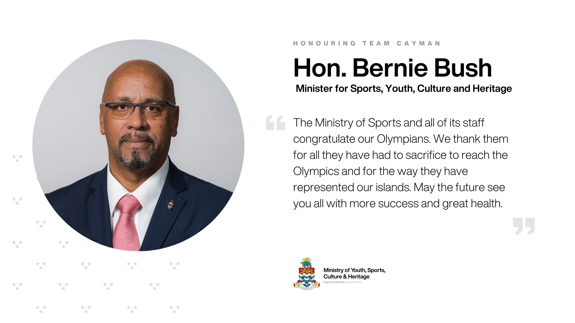 The Minister responsible for Youth and Sports, Hon. Bernie Bush thanked the Cayman Islands Olympic delegation. “Like many Caymanians, I was so incredibly proud of how Jillian Crooks, Brett Fraser, Kemar Hyman, Raegan Rutty and Shalysa Wray represented the Cayman Islands during Tokyo 2020,” he said.