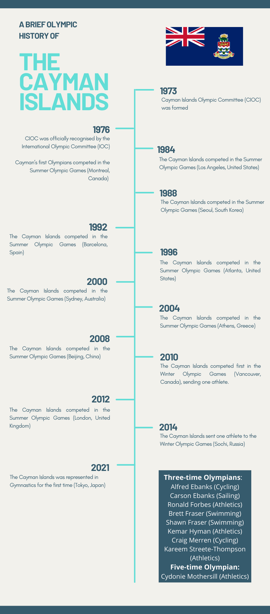 The Cayman Islands Olympic Team garnered three personal bests during the XXXII Tokyo Olympics (23 July – 8 August 2021). Competing in the most challenging games of the modern era, Team Cayman’s five athletes nevertheless gave us edge-of-your-seat performances. Their spirit inspired tributes from the Ministry of Sports, the Cayman Islands Government, and the Cayman Islands Olympic Committee.