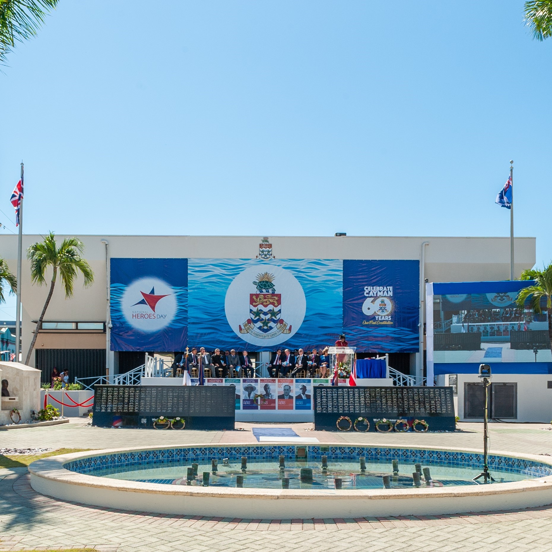 Quincentennial Square is made up of two areas; Heroes Square (in front of the courthouse) and Celebration Park (courthouse parking lot during the day). They were opened in 2003 as part of the Quincentenial Celebrations to create a central public area in the heart of George Town that the community could use to celebrate their history and cultural icons, as well as a community space for public events on evenings and weekends. Heroes Square is a sacred area that should only be used for formal National events in relation to the celebration of our country and national icons through memorial services and formal ceremonies.