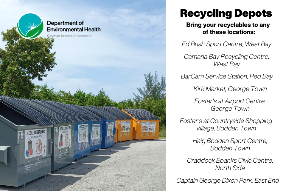 All recyclables are stored at the recycling area at the George Town Landfill. Once sufficient quantities are collected, recyclables are prepared and shipped to a United States recycling plant.
