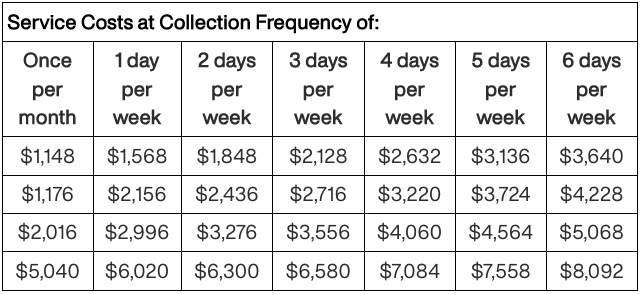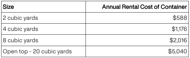 The fees for commercial container rental and collections services offered are as follows: