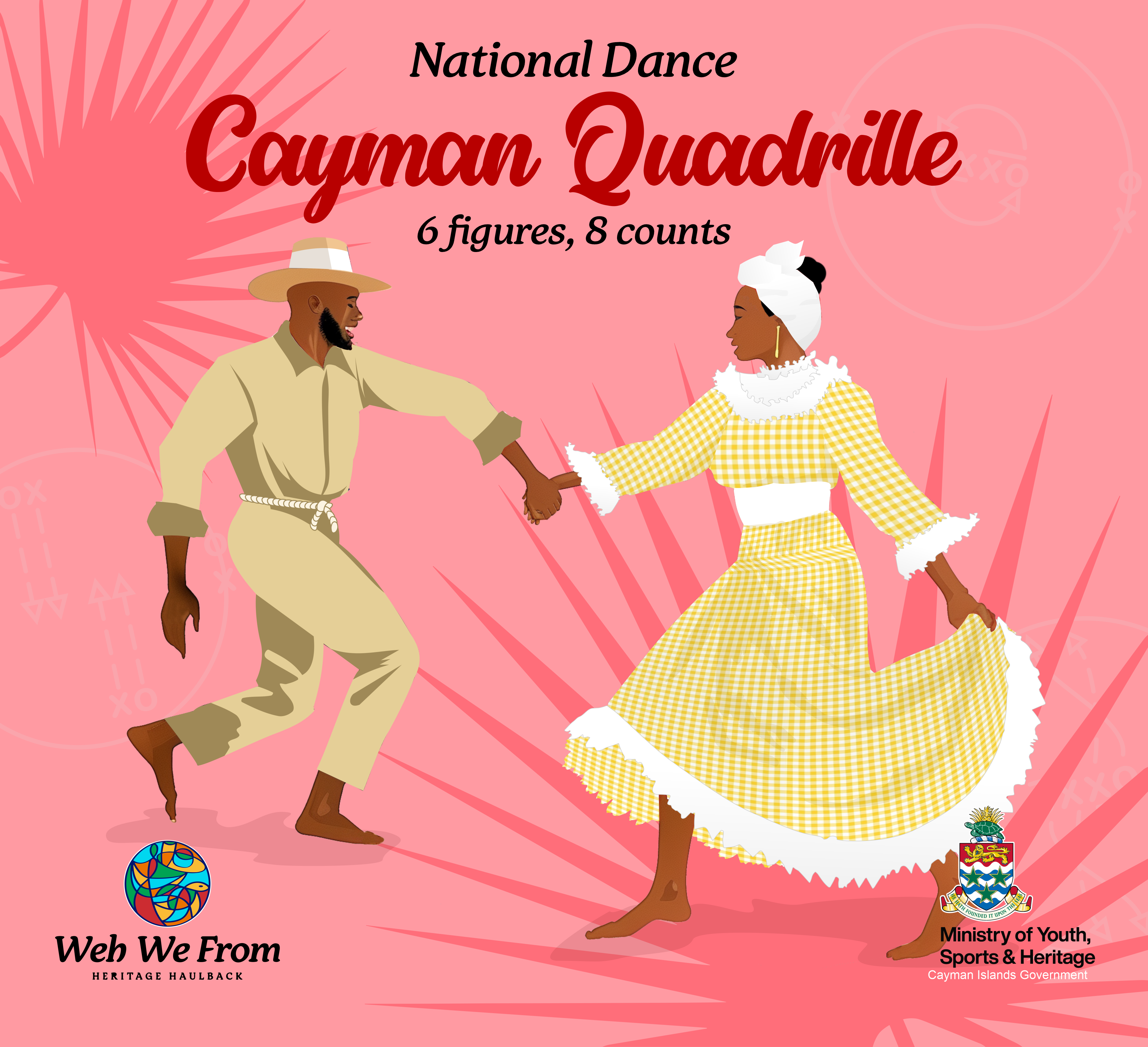 The Cayman Quadrille is a traditional dance that was a beloved form of entertainment in the Cayman Islands. Originating from the late 18th century of French society and spreading to England in the early 19th century, Caymanians evolved the Quadrille into a ballroom (formal) and camp (lively) style. This evolution was characterized by six distinct figures and eight counts that embodied the spirit and rhythm of African influences that featured more rhythm, tempo and lively steps.
