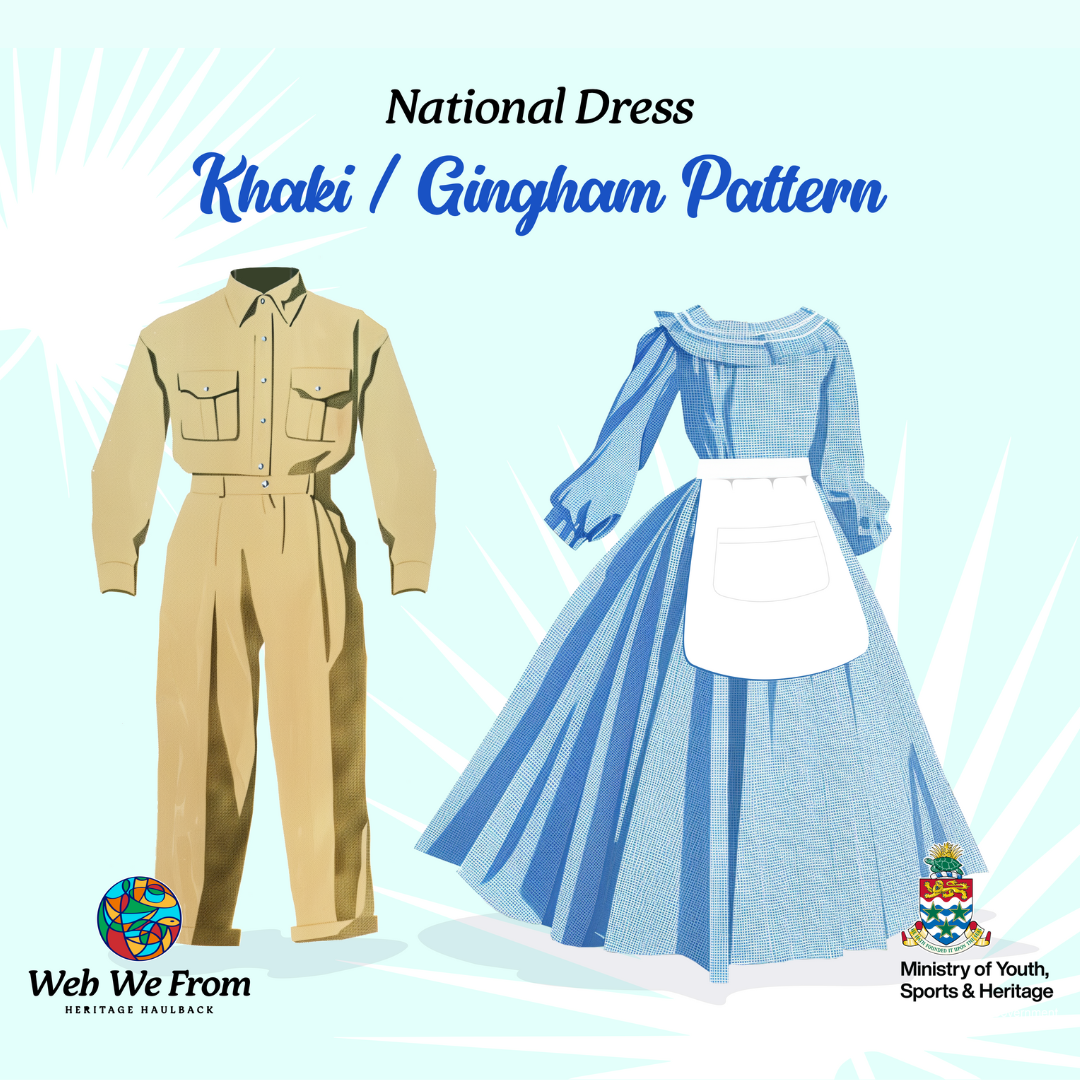 The traditional clothing worn by Caymanian men and women reflects the simplicity, durability, and practicality that were essential in the daily lives during the 18th and 19th century. The wearing of this clothing showcases the resourcefulness of the Caymanian people and is a symbol of Caymanian identity and pride that showcases the cultural heritage of the Cayman Island.